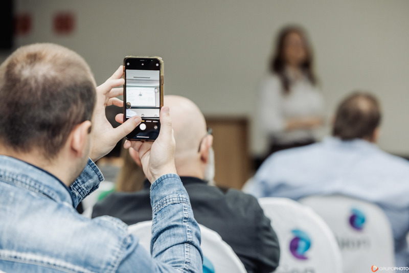 • Estética corporativa: priorizamos composições elegantes, uso inteligente da luz ambiente do Holiday Inn, closes nos oradores, nas trocas de contacto e nos momentos de descontração.