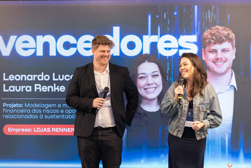 O evento, que é um marco para jovens talentos do setor, premiou nesta edição Leonardo Luce e Laura Fabre Renke, das Lojas Renner, pelo projeto inovador sobre modelagem financeira de riscos climáticos. Nosso papel foi capturar não apenas a entrega dos troféus, mas a atmosfera de prestígio, o networking de alto nível e a seriedade que um evento patrocinado pela KPMG exige.
