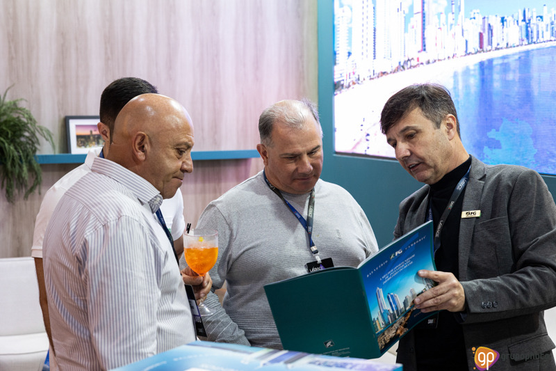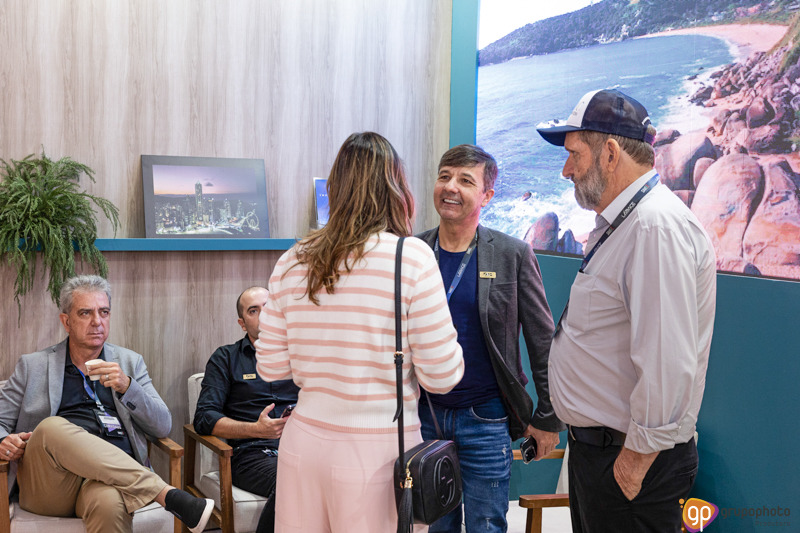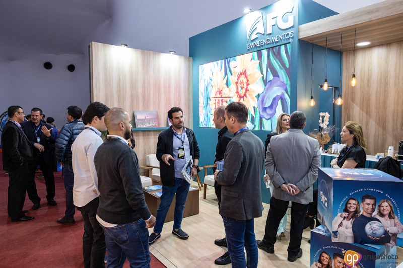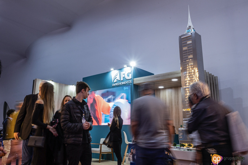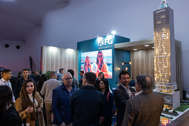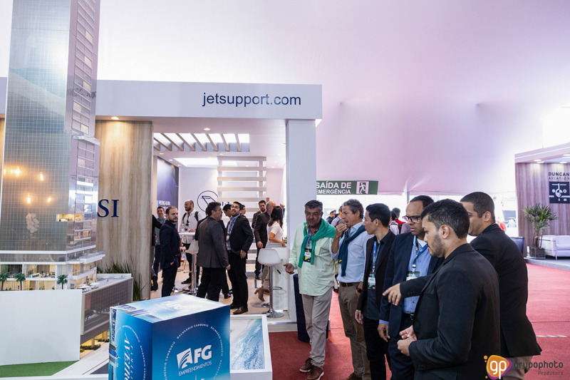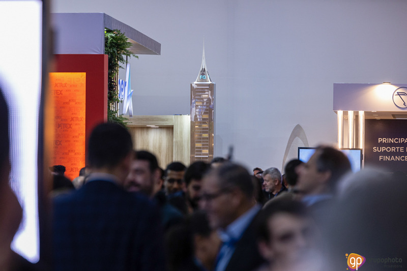 Fotografamos o stand de apresentação dos empreendimentos da FG, na feira de aviação LABACE.